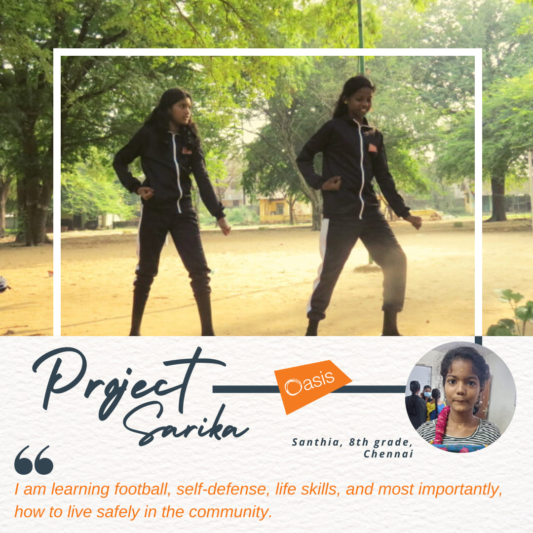 This reality makes programmes like Project Sarika crucial for young girls in Kannagi Nagar. Santhiya says, “I am learning football, self-defence, life skills, and most importantly, how to live safely in the community. Through Oasis, I also have a mentor to guide me in the right direction in life.”