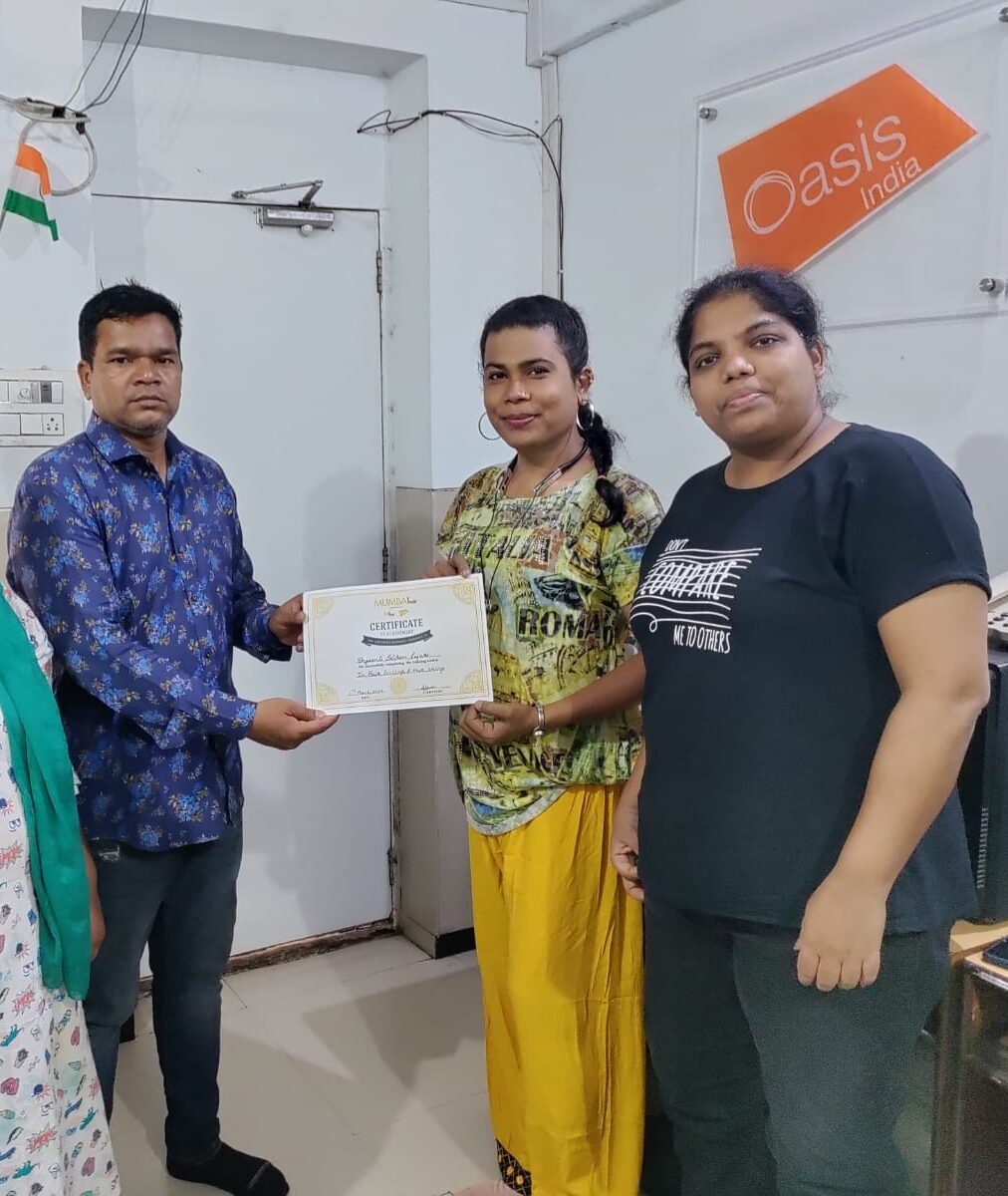 Shyamli’s mother was a sex worker, and growing up, she experienced sexual abuse and was bullied for the way she was. She began transitioning when she closely watched the women in the red-light area and wanted to be like them. Right before Shyamli joined the hairdressing training, she considered becoming a sex worker like her mother, as she could not get a job anywhere. She says that Oasis India was truly an oasis for her as the opportunity came at the right time or her life would have been different in the red-light area.